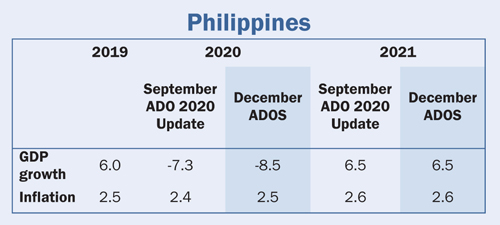 The new growth forecast, presented yesterday in a regular supplement to the Asian Development Outlook 2020 Update, showed that the projection was revised from the earlier outlook of a decline of 7.3 percent, as reported in September.
