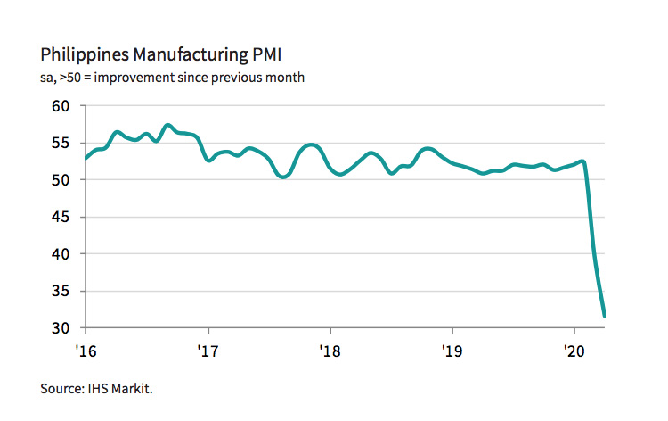 David Owen, economist at IHS Markit, said the Philippines’ manufacturing PMI joined a chorus of data demonstrating the widespread and severe impact of lockdown measures on the global economy in April.