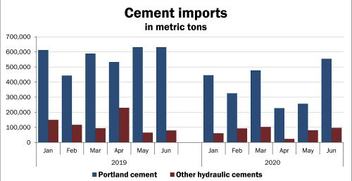 Citing data from the Bureau of Customs, industry sources said the total amount of cement imports in the first half of the year amounted to 4 million metric tons (MMT), down 54 percent from 2.6 MMT in the same period in 2019.