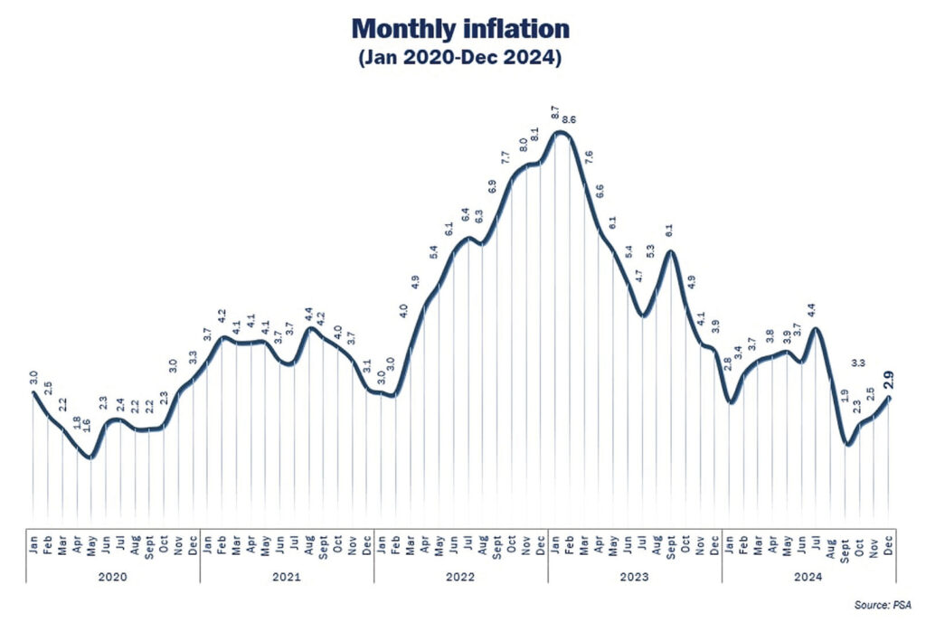 “The uptrend in the overall inflation in December 2024 was primarily influenced by the faster annual increment in the index of housing, water, electricity, gas and other fuels at 2.9 percent during the month from 1.9 percent in the previous month, the statistics authority said.