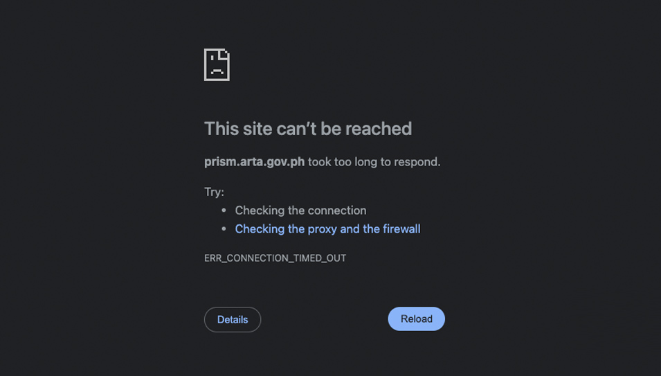 UPDATE: As of Saturday, Sept. 20 at 9:38 a.m., ARTA-PRISM website at prism.arta.gov.ph is inaccessible.
