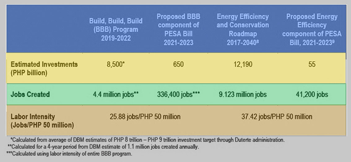 Comparison of Labor intensities between Build, Build, Build Program and Energy Efficiency Investments in the Philippines
