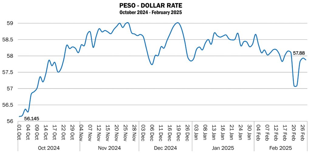 The peso exchange rate has appreciated against the US dollar so far in February—the strongest for the peso in nearly two months. (This) could help ease importation costs and overall inflation. Though this (could be) offset by higher electricity rates and other utility prices and higher local fuel pump prices in recent weeks,” Ricafort said.