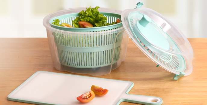 Wash and dry vegetables thoroughly with the Gondol Vega Salad Spinner (top) and juice up to boost your immune system with the handy Oster Mason Jar Blender.