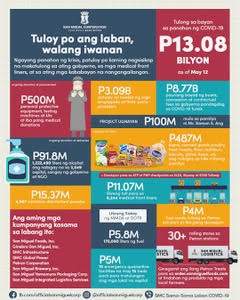 No let up. San Miguel reported that its continuing donations to the country’s efforts to combat the Covid-19 pandemic has reached P13.08 billion. The company said it is committed to help government, medical front liners and vulnerable communities and initiate new projects to further support the battle against the virus.