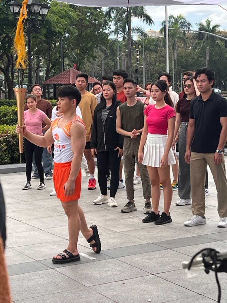 In the subsequent scene, an ArenaPlus supporter hands Yulo an Olympics-style torch, symbolizing the community’s belief and support for the athletes. A montage follows of the three athletes carrying the torch, running alongside their rallying supporters. As they reach the end of the run, a portal appears before each athlete, revealing Paris on the other side. Yulo reaches out towards the portal, symbolizing the athletes’ determination to reach the Olympics.