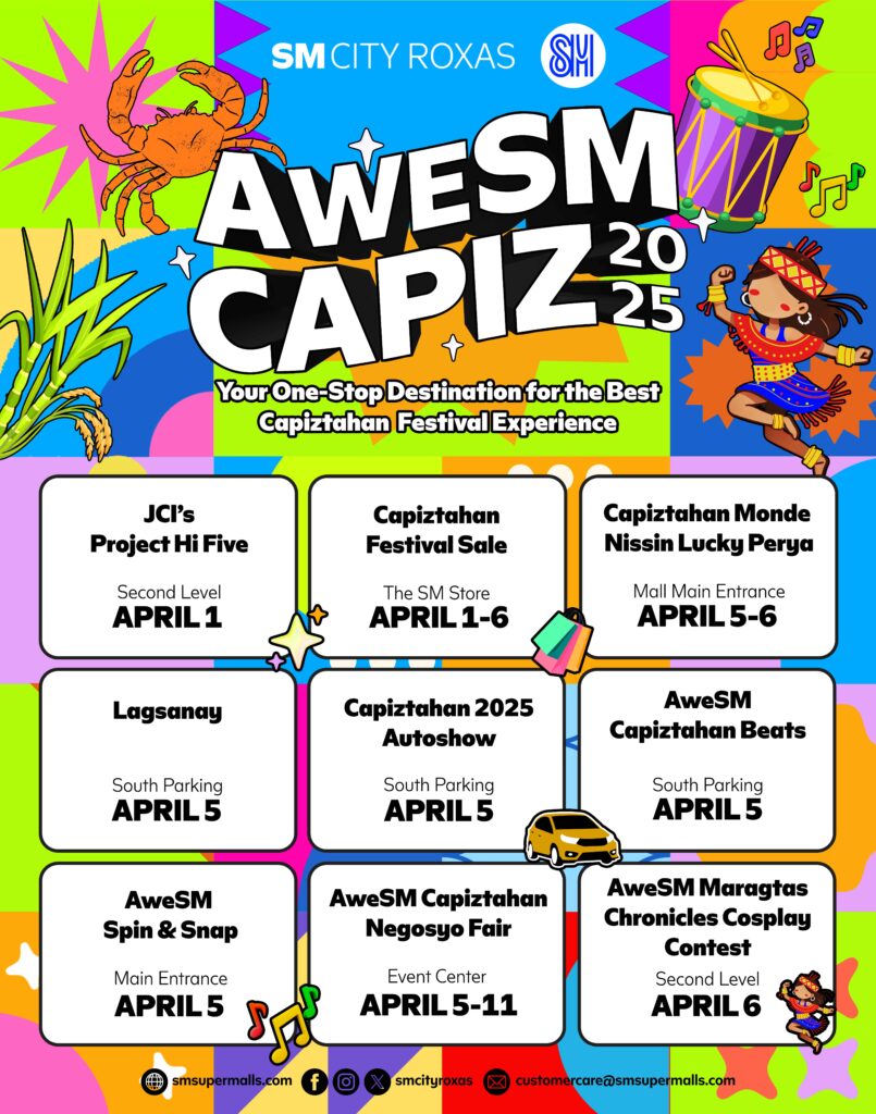 Locals and visitors are invited to experience the Capiztahan Festival’s fun and excitement at SM City Roxas from April 1-6.