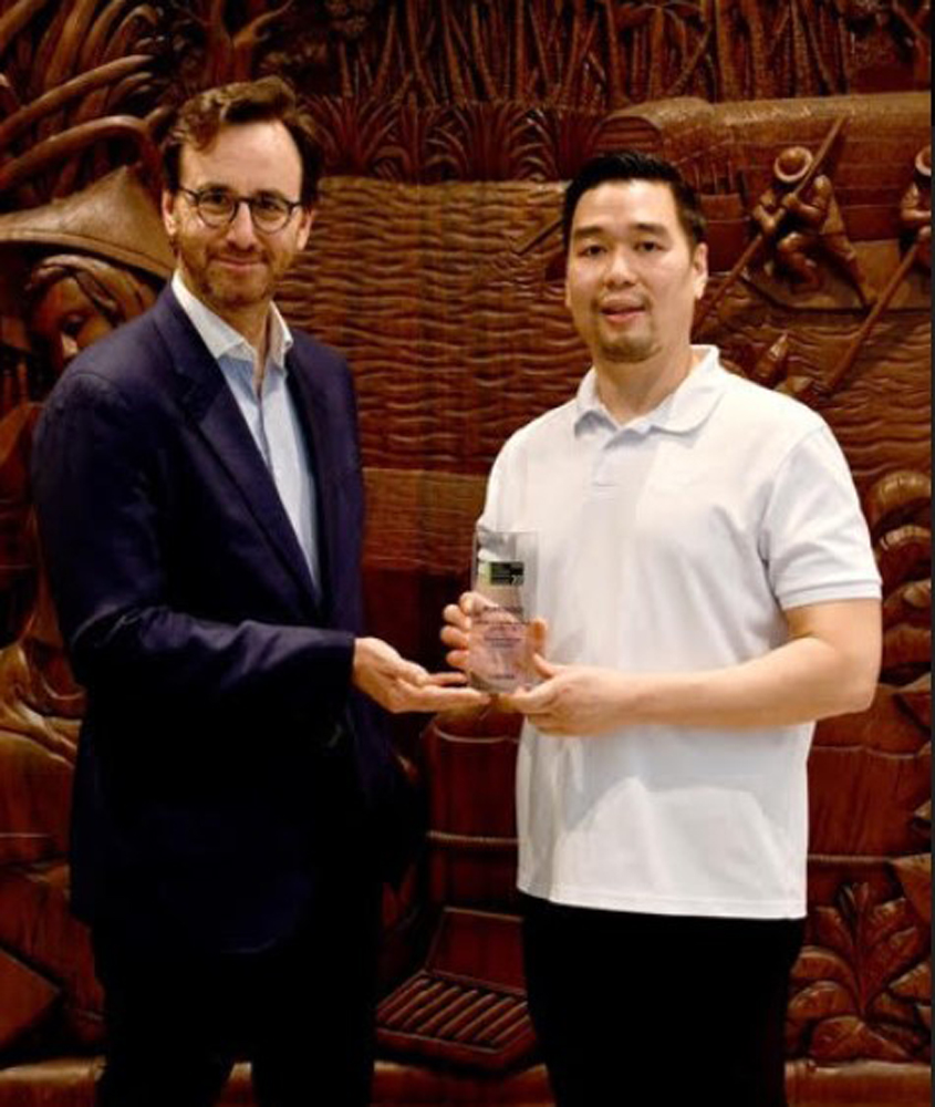 Kantar Worldpanel CEO Guillaume Bacuvier (left) hands over the award to Puregold Price Club Inc. president Vincent Co.