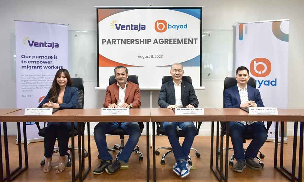 Taking greater strides in the country’s digital payment transformation, CIS Bayad Center, Inc. (Bayad), the pioneer brand in the outsourced payment collection system and a full-service fintech subsidiary of Meralco, has officially renewed its partnership with fintech institution Ventaja International Corp., initially developed as a telecom prepaid card provider for Filipino migrant workers overseas, now offering a variety of financial services such as remittance, loading and bills payment services for both government and household utilities, all of which, are powered and supported by Bayad’s robust biller aggregator system.