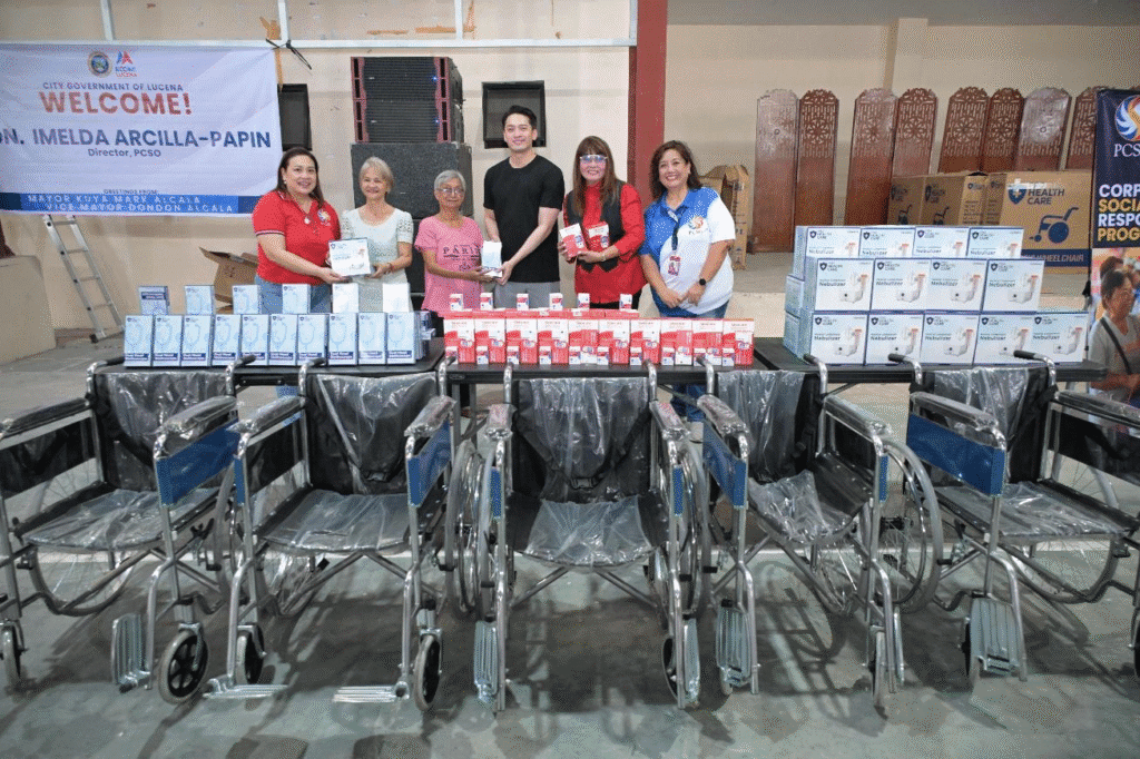 On August 20, PCSO Directors Jennifer Liongson-Guevara and Imelda Papin led the turnover of medical devices and mobility aids to Lucena City in celebration of “Araw ng Lucena.” Mayor Mark Alcala received the donations comprising 50 wheelchairs, 25 blood pressure monitors, 25 glucometers, 25 nebulizers, 10 pulse oximeters, and 10 thermal scanners.