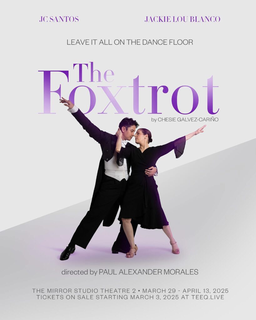 “The Foxtrot,” which premiered in June at Tanghalang Ignacio Gimenez (CCP Black Box Theater) as part of last year’s Virgin Labfest, offers a glimpse into the tense relationship between Diego, a dance instructor, and Anna, a wealthy matron, during their final rehearsal for an amateur ballroom dancing competition. The production stars JC Santos, reprising his role as Diego, and Jackie Lou as Anna. Ballet Philippines’ Paul Alexander Morales returns to direct.