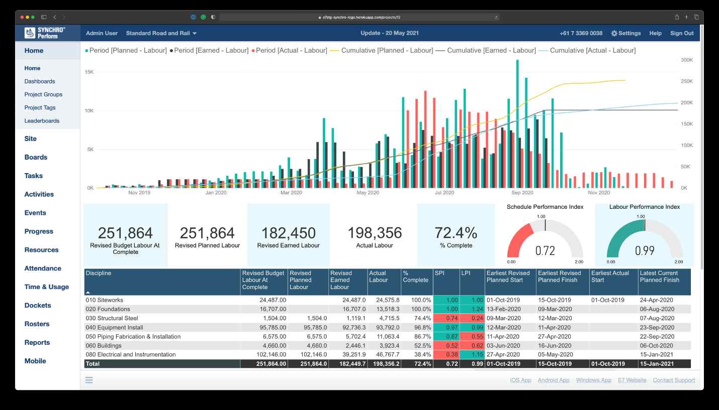 With daily, clear line-of-sight into the management of all site resources from staff, sub-contractors, and equipment, SYNCHRO Perform fills the gaps between end-of-month financial reporting cycles. And, with project leadership potentially at a disadvantage when it comes to decision-making due to delays in progress capture and errors in data entry, SYNCHRO Perform provides a timely source of truth for all performance management data and metrics, so that project leadership knows the health of every project. Construction-specific features capture daily progress quantities, diaries, unplanned events, timesheets, tickets, and estimated costs from field personnel, providing leadership with the timely data they need to make informed decisions.