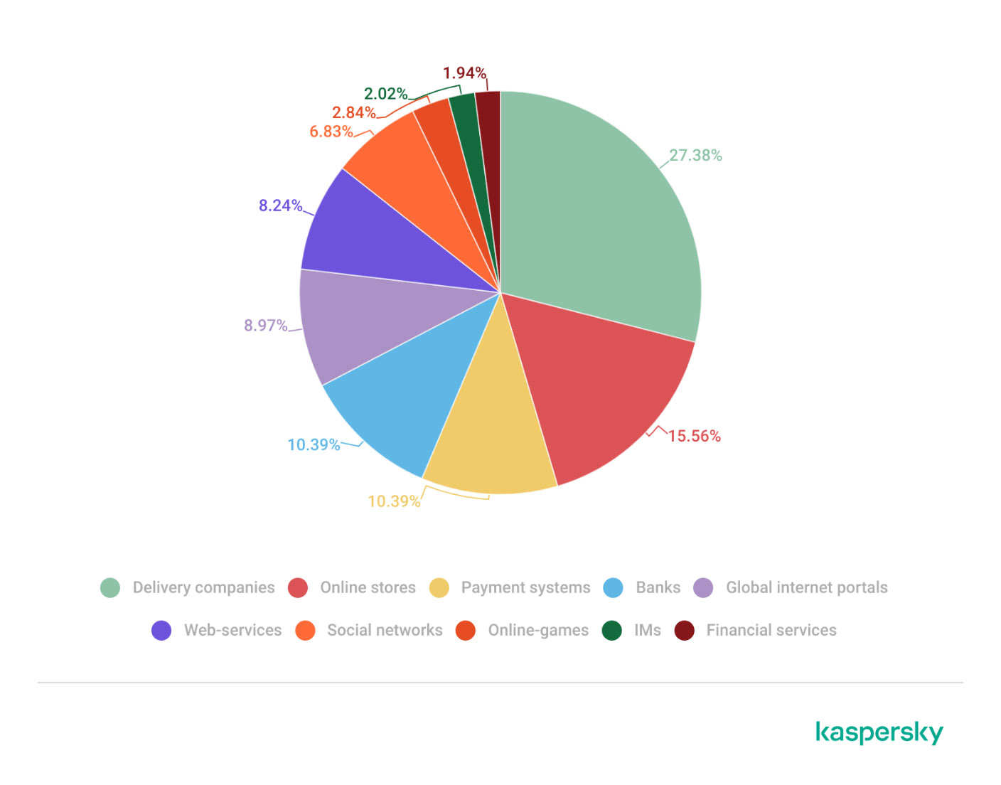 Phishing attacks also targeted online stores (15.56 percent), payment systems (10.39 percent), and banks (10.39 percent). Kaspersky determined the ranking of targeted organizations based on the Anti-Phishing system’s detection of phishing content accessed through email links or the web.