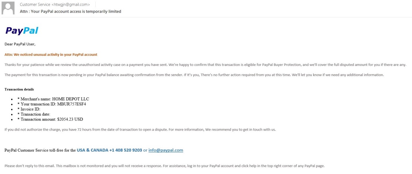 Like most phishing schemes, it starts with an unusual e-mail from a large online store or a payment system. For example, it could be a letter from a fake version of PayPal telling a would be victim that they have just received a request to withdraw a large amount of money from your account.