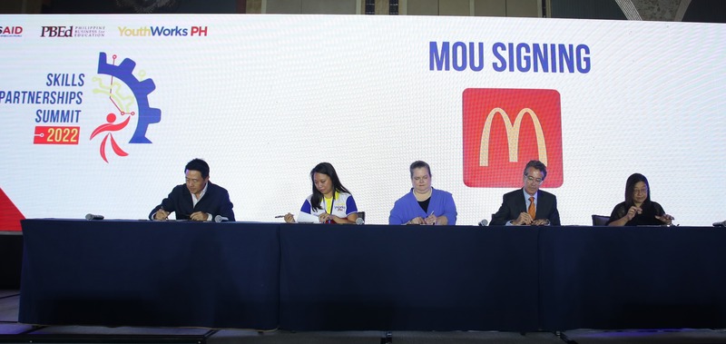 Right: USAID Philippines and PBEd renew their partnership with McDonald’s Philippines to provide training and employment opportunities for youth in the food and beverage services sector.