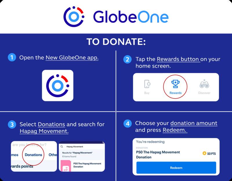 To support, simply download the New GlobeOne app and donate your Rewards points for as low as P1. Just follow these steps: