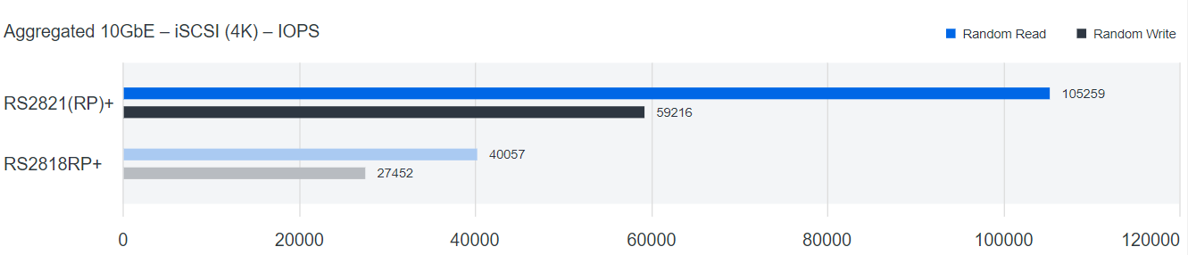 The new RackStation unit boasts a significant leap in performance over its predecessor,1 delivering 115 percent higher random write IOPS, 162 percent higher read IOPS.2 It also offers 26 percent higher sequential read performance at 2200 MB/s and 65 percent higher sequential write throughput at 1164 MB/s.