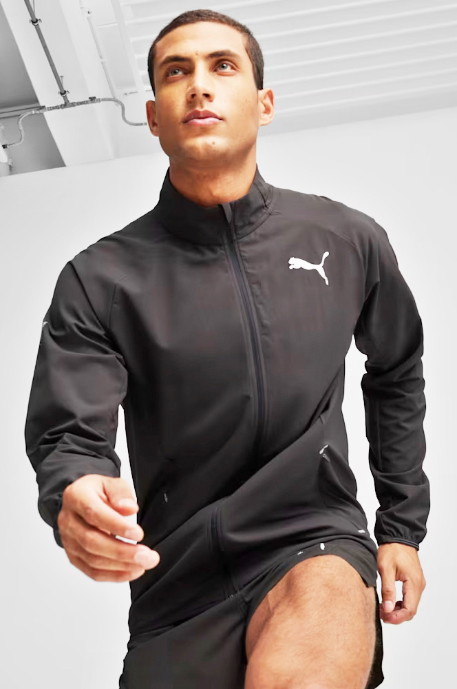 * The Puma Run Elite men’s jacket. Sporting a timeless design, this blends next-gen craftsmanship with lightweight, breathable materials. It features the Ultraweave and dryCELL technology and strategic laser perforations for enhanced airflow to keep you cool and comfortable during your toughest runs.