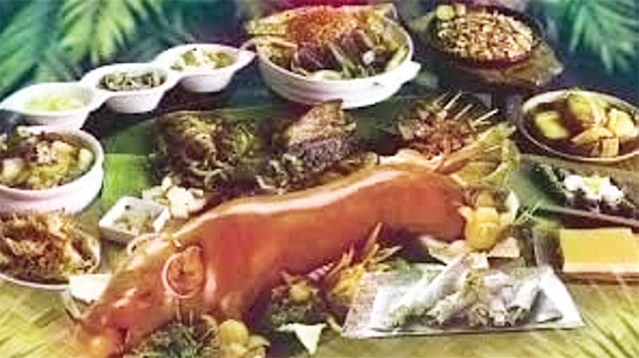 An uncle, Tatay Tecio would cook lumo (stewed carabao) our Sunday breakfast. Then we children go off to play and wait for a call to have Sunday lunch.
