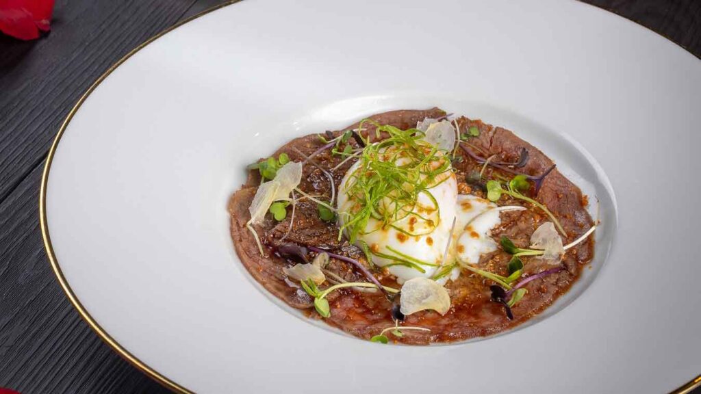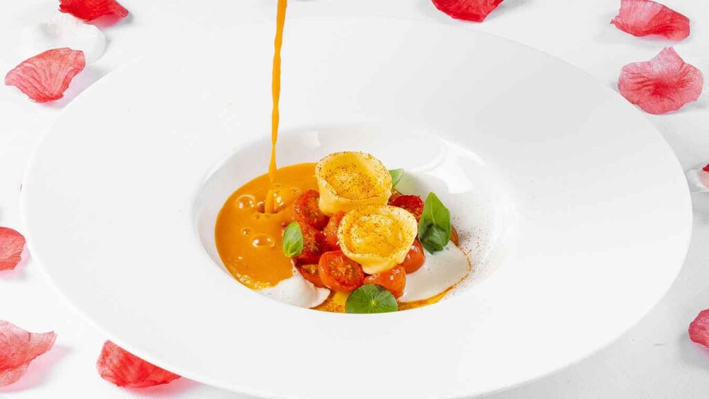 Crystal Dragon, one of the metro’s top restaurants for Cantonese cuisine, impresses with a four-course set menu available on February 14 for lunch and dinner. The menu starts with premium Ostra Regal Oyster with kaffir lime chili dressing served with foie gras toast with red wine vinaigrette reduction, which is followed by a rich and hearty soup of Alaskan King Crab Bisque with aromatic Szechuan mala oil.
