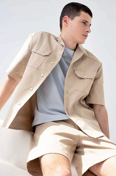 One step dressing is a key promise of harlan + holden, with new elasticated details on everything from t-shirts, dresses, shorts, trouser waists and jacket back panels. New short sleeve shirts double up as light cover-ups and are versatile for any kind of day. The men’s collection has a mix between leisurewear and new uniform separates, with bermuda shorts a key style which add much comfort and freedom of movement as wanted.