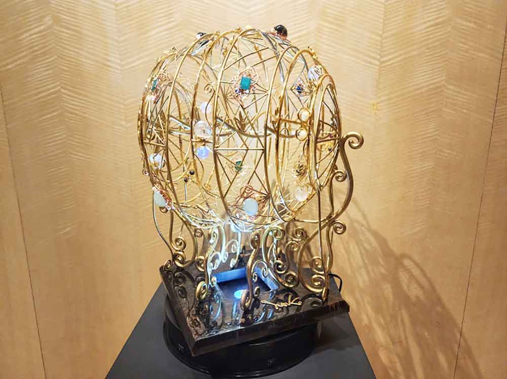 The Orbis pieces draw attention to intricate worlds within worlds as gemstones act like celestial bodies that spin freely on different planes while sharing the same axis. Meanwhile, the Finestra Series showcases intricate pendulums that swing in perfect balance. Finally, the Labyrinthian is the largest piece Ivan has created at over 5 feet tall. He shared that it took him 3 years to complete the piece due to its complexity.