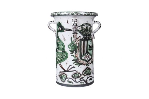 A Spanish earthenware vase by Domingo Punter, adorned with a phoenix, would look great in the dining room. Its rich green color adds vibrance to a room and she suggests topping it all off with a tropical arrangement.