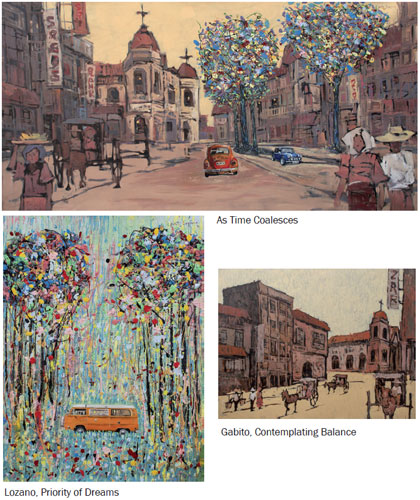 Gabito and Lozano’s oeuvre is primarily characterized by sincere insight into the bygones–illustrated through gestural, vigorous and often spontaneous applications of paint. The bold use of color and visually stimulating grandness of the forests and urban landscapes are stark reminders of what once was. Through conscientious introspection, the coalescence of the artists’ body of work is an acknowledgement of time’s fluidity: blurring, but at the same time, emphasizing, the fine line between the past and present, the then and now, the traditional and the contemporary.