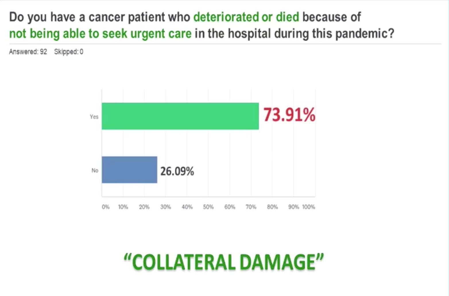 The PSMO survey revealed that over 93 percent of its doctors had a patient whose cancer had progressed, or had died after they were not able to seek urgent care amid the pandemic.