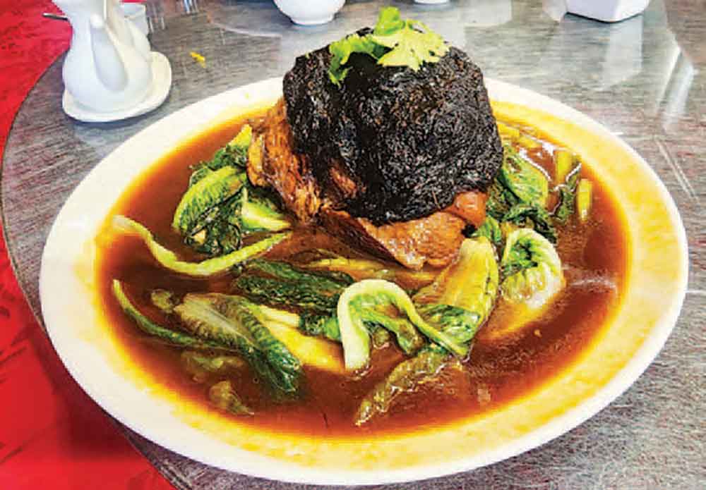 The Braised Pork Knuckle and Sea Moss with Garden Greens will be a familiar sight for any lover of Cantonese cuisine. The pork is braised to fork-tender softness, with the thick sauce pairing well with the meat’s inherent sweetness.