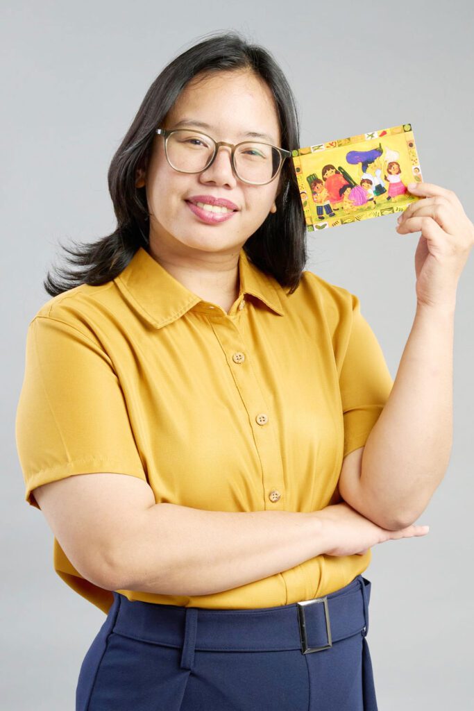 Iori Espiritu, a ceramic artist and illustrator, designed the “Sama-Sama, Salo-Salo,” which shows children gathering ingredients for a meal, reflecting her hope for children to have proper nutrition or to have access to healthy food.