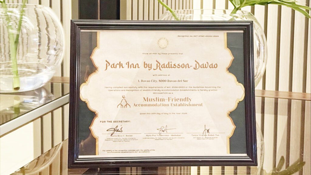 SM Hotels and Conventions Corp. (SMHCC) earned the distinction of having the first Muslim-Friendly Accommodation Establishment in the Davao Region following the Department of Tourism’s (DOT) accreditation of its Park Inn by Radisson Davao property.
