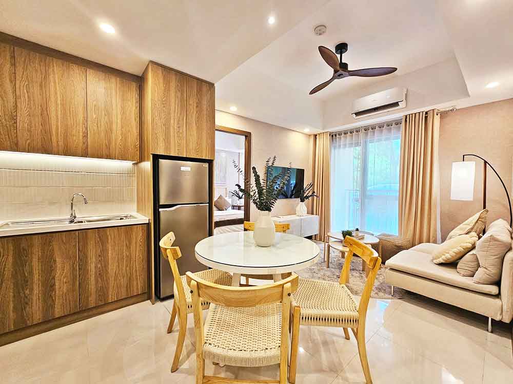 While Pico Terraces’ homeowners may occupy their free time with a plethora of outdoor and indoor fun activities, they will take equal delight in their carefully-designed condominium suites. Available in one-, two-, and three-bedroom configurations, ranging in size from 46 to 99 square meters, these suites feature open living spaces that evoke a positive and airy ambiance, with large windows letting in ample natural light and ventilation. All Pico Terraces units have balconies which serve as a vantage point to scenic vistas of the amenities, mountains and verdant greenscapes. The condominium buildings feature a contemporary tropical design, with an earthy color palette and wooden textures enhancing their overall aesthetic appeal.