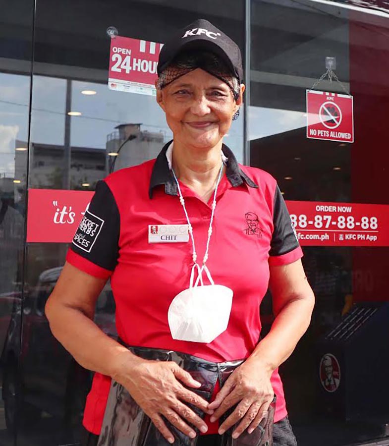 Tatay Roberto, 77, and Nanay Chit, 70, are among the 156 employees at 145 KFC branches in different parts of the country whose ages range from 41 to 77. They work part-time to assist the regular KFC team during peak hours.