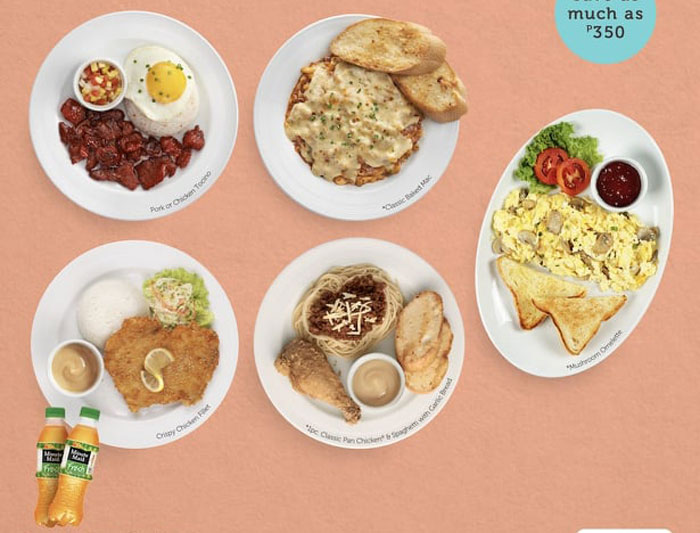 The Choose Any 2, an all-time favorite, value for money offering is also now available for delivery. Starting at PHP 459, choose how you want to define comfort and select among 6 different dishes: chicken tocino, 1 pc classic pan chicken & spaghetti w/ garlic bread, classic baked mac, mushroom omelet, pork tocino, and crispy chicken fillet — and top it off with a serving of juice depending on the total number of dishes you ordered.
