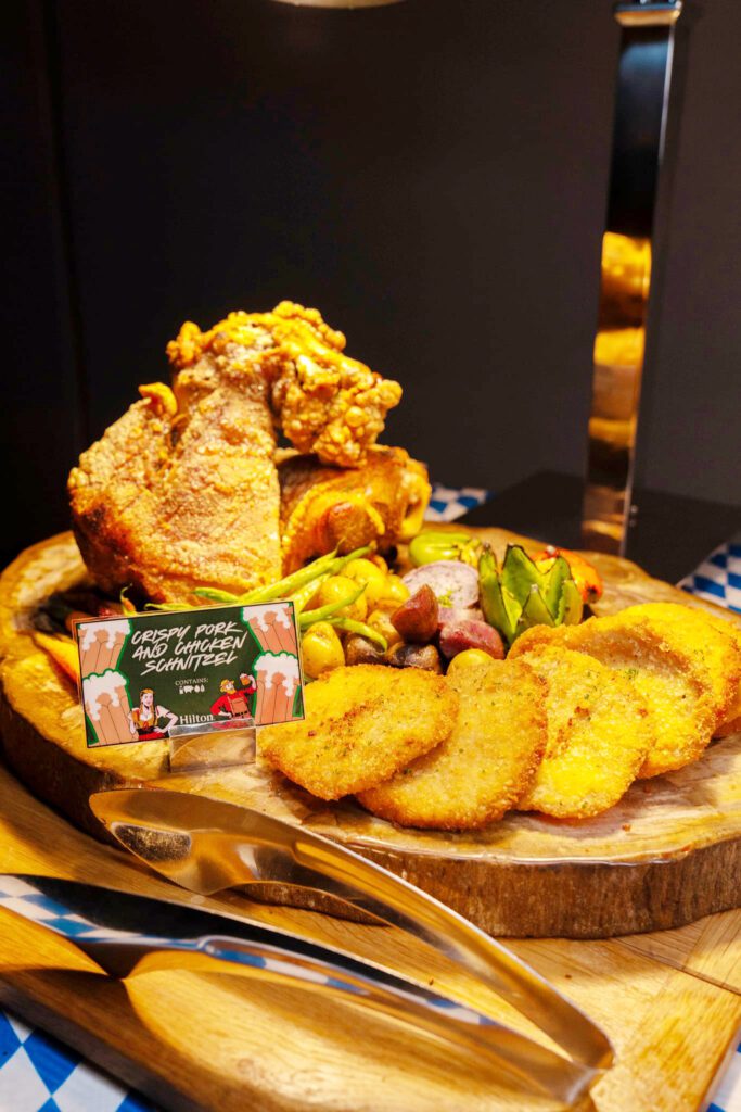 For the first time, Oktoberfest at Newport World Resorts will feature a buffet-style spread, allowing guests to explore and enjoy an even wider variety of Bavarian dishes at their own pace. Platters of warm pretzels and rye bread paired with savory dips welcome guests, followed by spreads of sausages, sauerkraut, schnitzel, and the famed crispy pork knuckle with its golden crackling. Classic sides such as Spaetzle and braised red cabbage bring balance to the hearty fare, before desserts like apple strudel, Kaiserschmarrn, and jam-filled Krapfen provide a sweet finish.