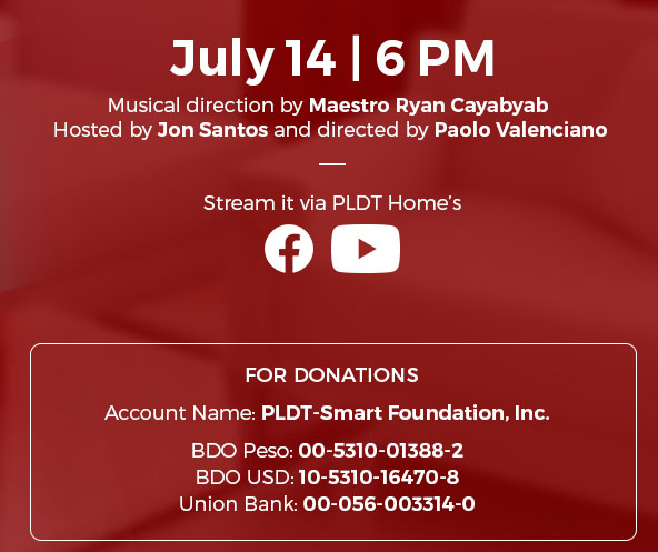 Watch the livestream benefit concert on PLDT Home’s Facebook and YouTube pages on July 14, 2020, Tuesday, at 6:00 PM. For those who would like to contribute to the cause can donate through the PLDT-Smart Foundation, Inc.’s Paymaya and bank accounts, or Text DONATE<Space><Amount> and send to 3456.