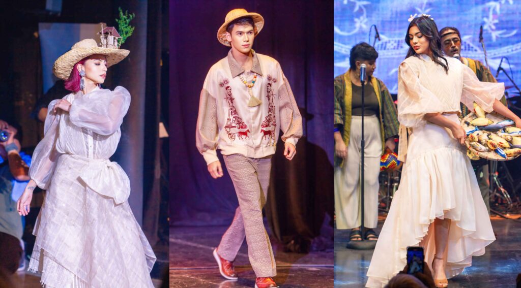 Each garment in the collection reflected Andrada’s dedication to the craftsmanship of traditional Filipino fabrics and textures, while offering a fresh, global perspective. Guests were treated to a visually stunning experience as they watched the garments come to life on the runway, set to the powerful rhythms and enchanting vocals of Anima Tierra. The world music collective’s performance elevated the fashion show, infusing it with cultural depth and transforming the runway into a dynamic, immersive experience.