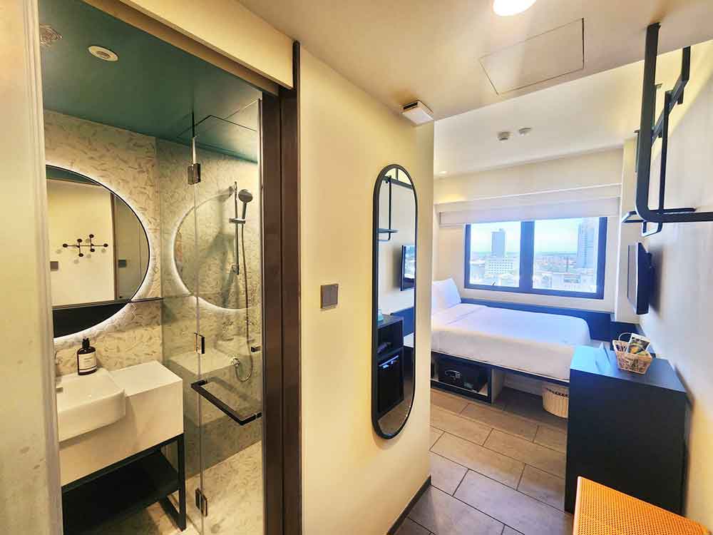 Lyf also offers multiple room options for its guests. The One of a Kind is a cozy studio unit that is a perfect fit for the solo traveler. It comes with a queen-sized bed with an outlet on the ledge beside it, allowing guests to use their smartphones comfortably while charging. There is an en-suite bathroom with a rainfall showerhead with organic botanical body wash, shampoo, and conditioners available in large pump bottles.