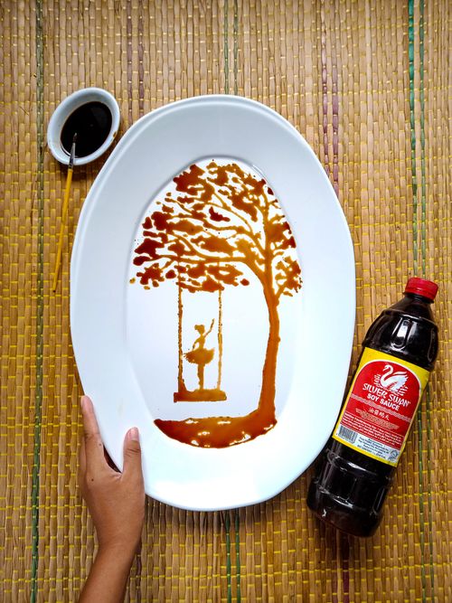 The trend continued with the soy sauce art of Cebu 19-year-old Thea Sophia Disabelle, who paints pictures with Silver Swan Soy Sauce–another pantry staple being used for creativity.
