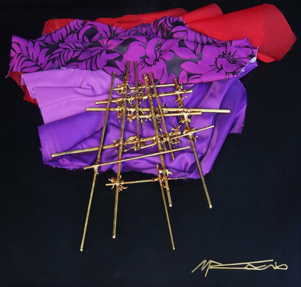 In “Resplendence”, Cacnio weaves captivating vignettes through fabric and metal, transforming these materials into a testament of elegance and sophistication. The exhibit features both sculptural and wall relief works, highlighted by the monumental piece titled “The Majestic”. This masterpiece serves as the centerpiece, encapsulating the ethos of the exhibition—an exploration of dignity, grace, and the beauty of hard-won artistry.