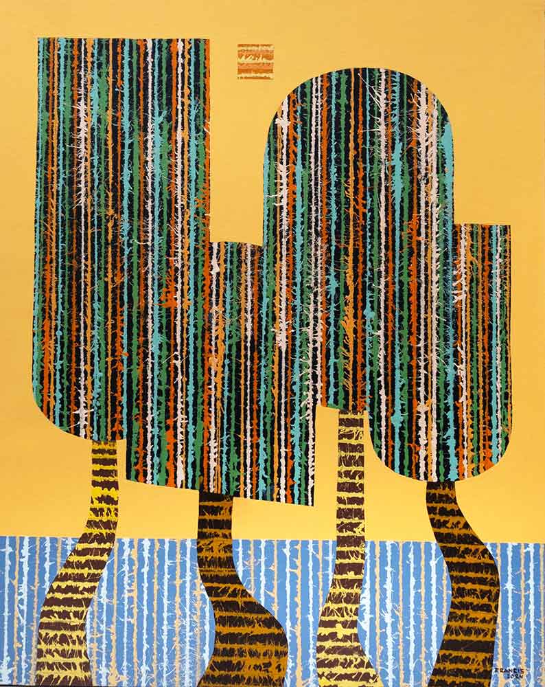 For his latest exhibition, visual artist Francis Evangelista interprets his ruminations on nature and man and how its relationship transcends perceptual understanding. Illustrating his abstracted renditions of forestry through almost primal permutations through various shapes, forms, and color, Evangelista’s work is a reminder to recalibrate our understanding of the world we inhabit, for it is not merely just a backdrop against which life unfolds, but a vibrant and sentient entity where realities converge.