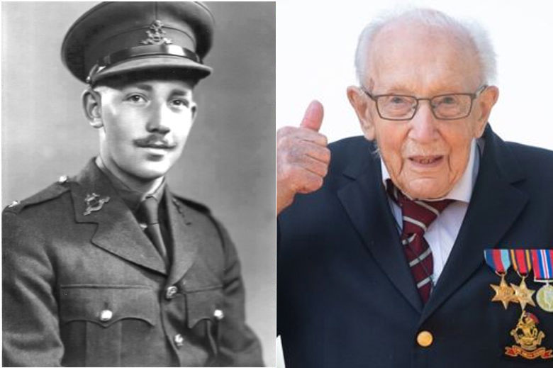 Retired army captain Moore, who has used a rollator to move around since breaking his hip, set himself the target of walking the 25 meters around his garden 100 times before his 100th birthday on April 30.