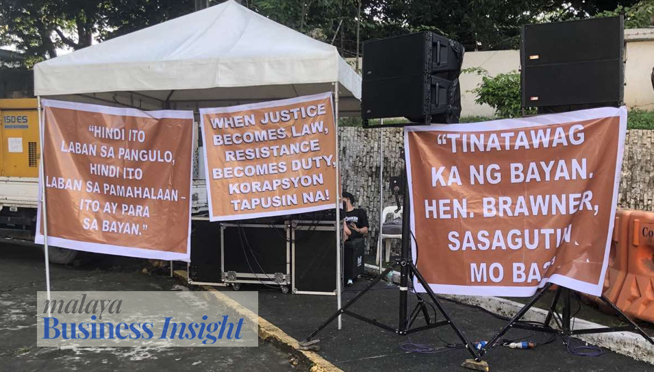 The UPI group set up a tent near the monument displaying placards, including one addressed to Armed Forces chief of staff Gen. Romeo Brawner Jr. that reads: “Gen. Brawner, it is time you support the call of the people.”