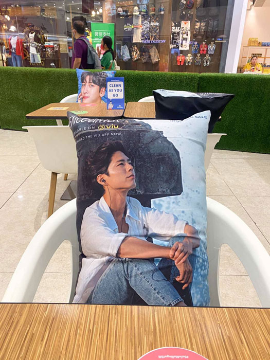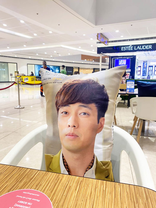 Pillows of some of Korea’s most popular leading men serve as dining buddies as well as fun social distancing markers. K-Drama fans will be delighted to find image pillows of their favorite actors as dining buddies and fun social distancing markers. These include Hyun Bin’s character from “Hyde Jekyll, Me”, Park Seo-joon in “What’s Wrong with Secretary Kim?”, Ji Chang Wook in “Love in Trouble”, Park Bo Gum in “Encounter”, and So Ji-sub in “Master’s Sun.”