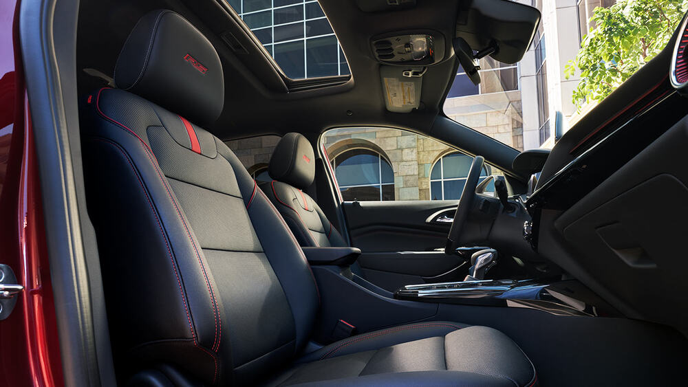• The distinct red accents in the Redline are also flaunted in its Jet Black interior. The seats are in two-tone black and cool gray, with 8-way power-adjust for the driver. The driver information center is upgraded to an 8” full digital cluster, with a large 11” touchscreen infotainment system. It’s also equipped with Power Liftgate with Height Adjust