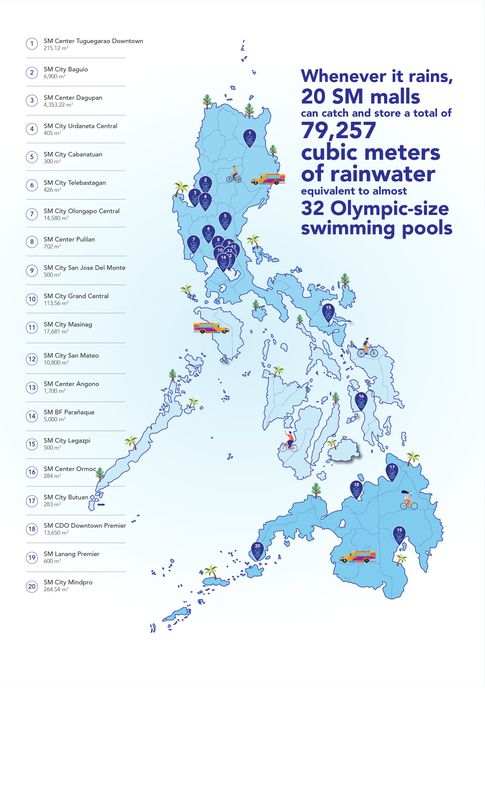 “Wherever SM is, we try to help our communities become resilient to changing weather patterns,” explains Arch. Garcia-Hsu. “Nationwide, we have 20 malls equipped with rainwater catchment facilities that help rainwater management to avoid flash floods for surrounding communities.”