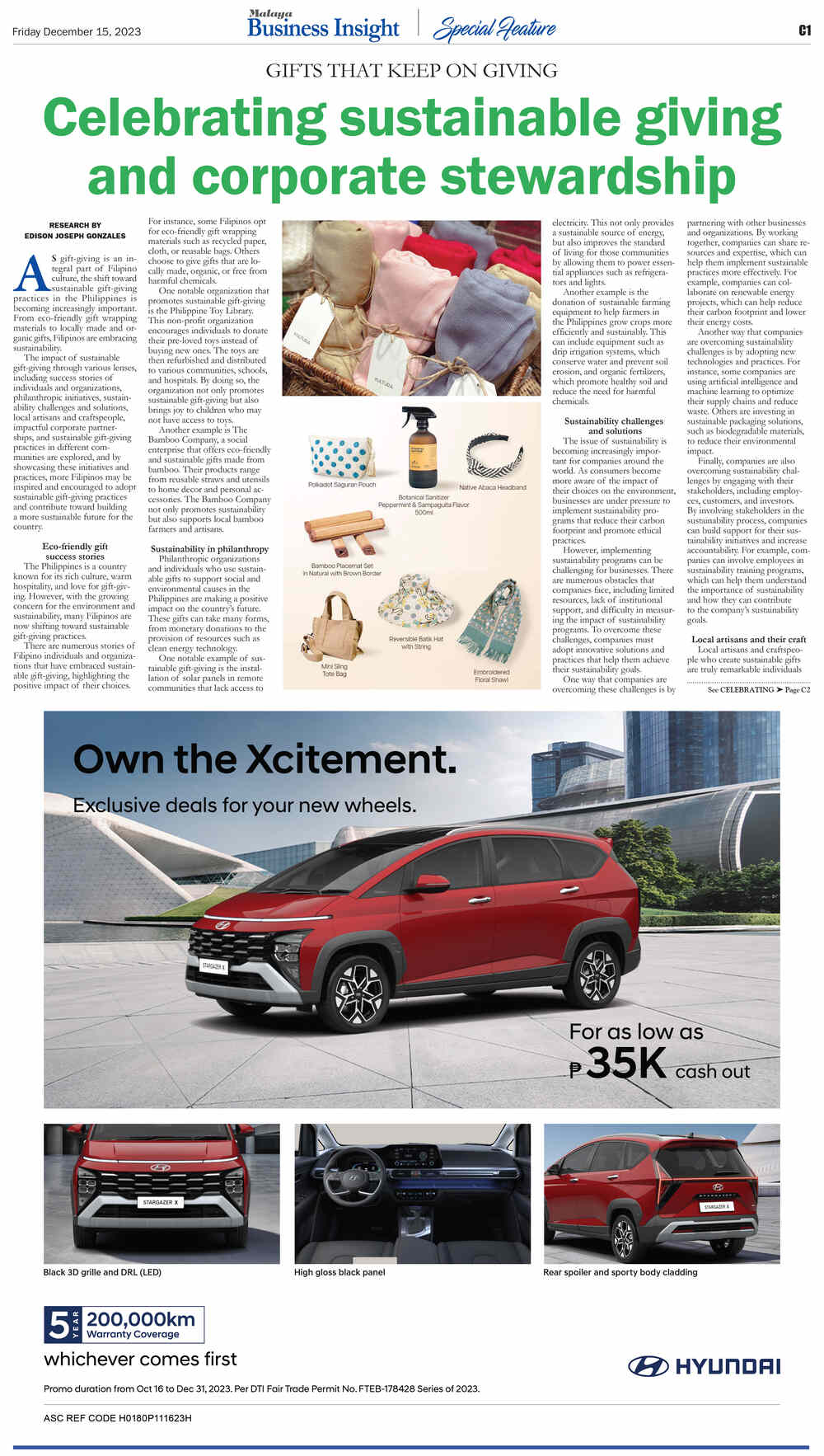 FacebookInstagramTwitterYoutube Tuesday, October 28, 2025 SEARCH Subscribe Home Business Business News World Business Corporate News Market Makers Marketing Board Shipping & Transportation News National News International News Sports Baseball Basketball Billiard Boxing Football Golf Olympics Other Sports Sea Games Tennis Volleyball Lifestyle Arts Columns Fashion Food Health Home Living Entertainment Columns Movies Music/Concert/Shows Spotlight TV/Streaming Opinion Column of the day Editorial Cartoon Editorial Opinion of the day Weekly Features Banking & Finance Torque & Power Alternative Fuel/Electric Vehicles Commercial Vehicles Luxury Cars Motorcycles Test Drives Infotech & Electronics Appliances/Electronics Constructioneering Cybersecurity/Privacy e-Commerce e-Sports/Gaming Fintech/Crypto Gadgets Imaging Printed Circuit Science and Technology Socmed Tech Industry Tech This Week Tech People Property Travel & Tourism Special Features Anniversary Issues 42nd Anniversary Section C Section D Section E Section F Section G Section H 41st Anniversary Supplement 40th Anniversary Report 39th Anniversary Report 38th Anniversary Report Supplements Branded Content Notices Supplements SPECIAL SUPPLEMENT: GIFTS THAT KEEP ON GIVING: Celebrating sustainable giving and corporate stewardship By ___ December 15, 2023 7:00 PM Updated: December 15, 2023 7:00 PM Share FacebookTwitterPinterestWhatsApp Asia Event Group Inc. launches Aftermarket Expo Asia 2025: A premier platform for innovation and growth in the automotive sector October 2, 2025 Fight vs. illegal gambling gets boost with ₱50M PAGCOR grant to NBI October 2, 2025 NUSTAR Online joins as major sponsor of RED Charity Gala 2025, championing fashion, philanthropy, and Filipino ingenuity October 2, 2025 Nestlé Wellness Campus promotes the importance of nutritious breakfast and healthy habits during Better Breakfast Month October 2, 2025 PlayTime CARES: Strengthening communities and supporting Government for nation-building October 2, 2025 Click here for a pdf copy of this supplement (Prototype only) Share FacebookTwitterPinterestWhatsApp Previous articleDisney On Ice presents 100 Years of WonderNext articleBuilding success, one award at a time - Advertisement - - Advertisement - E-Paper More Stories NUSTAR Online joins as major sponsor of RED Charity Gala 2025, championing fashion, philanthropy, and Filipino ingenuity Nestlé Wellness Campus promotes the importance of nutritious breakfast and healthy habits during Better Breakfast Month Load more Related Stories Nikki Limlengco - October 1, 2025Mixed-use marvels: The future of ASEAN property investment Nikki Limlengco - October 1, 2025Nigeria at 65: A nation’s journey from independence to aspiration Nikki Limlengco - October 1, 2025The new face of luxury: Where property meets lifestyle Load more
