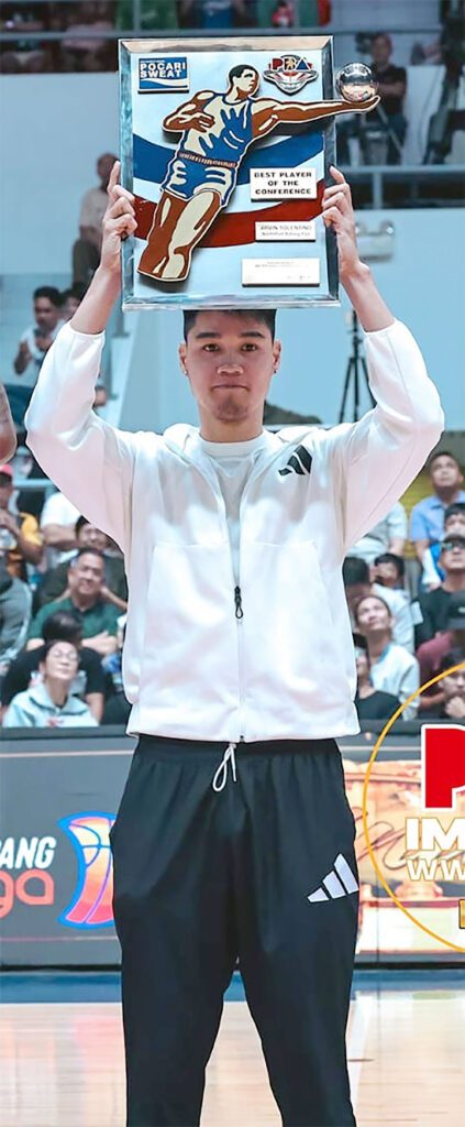 Tolentino bagged the Pocari Sweat PBA Commissioner’s Cup Best Player of the Conference award—his first—in his five-year career.