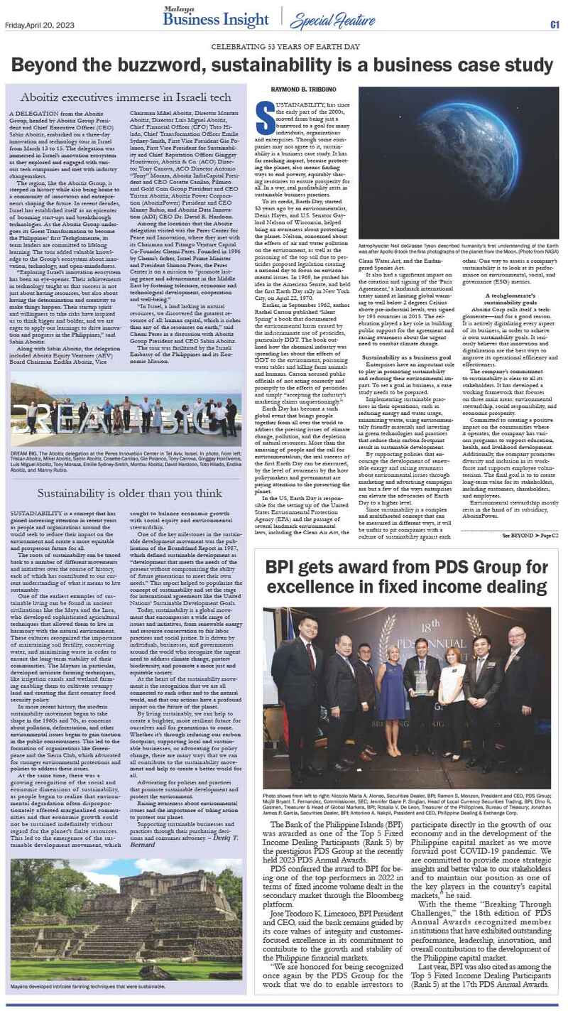 FacebookInstagramTwitterYoutube Thursday, October 23, 2025 SEARCH Subscribe Home Business Business News World Business Corporate News Market Makers Marketing Board Shipping & Transportation News National News International News Sports Baseball Basketball Billiard Boxing Football Golf Olympics Other Sports Sea Games Tennis Volleyball Lifestyle Arts Columns Fashion Food Health Home Living Entertainment Columns Movies Music/Concert/Shows Spotlight TV/Streaming Opinion Column of the day Editorial Cartoon Editorial Opinion of the day Weekly Features Banking & Finance Torque & Power Alternative Fuel/Electric Vehicles Commercial Vehicles Luxury Cars Motorcycles Test Drives Infotech & Electronics Appliances/Electronics Constructioneering Cybersecurity/Privacy e-Commerce e-Sports/Gaming Fintech/Crypto Gadgets Imaging Printed Circuit Science and Technology Socmed Tech Industry Tech This Week Tech People Property Travel & Tourism Special Features Anniversary Issues 42nd Anniversary Section C Section D Section E Section F Section G Section H 41st Anniversary Supplement 40th Anniversary Report 39th Anniversary Report 38th Anniversary Report Supplements Branded Content Notices EARTH DAY SUPPLEMENT By ___ April 21, 2023 1:00 AM Updated: April 21, 2023 1:00 AM Share FacebookTwitterPinterestWhatsApp Asia Event Group Inc. launches Aftermarket Expo Asia 2025: A premier platform for innovation and growth in the automotive sector October 2, 2025 Fight vs. illegal gambling gets boost with ₱50M PAGCOR grant to NBI October 2, 2025 NUSTAR Online joins as major sponsor of RED Charity Gala 2025, championing fashion, philanthropy, and Filipino ingenuity October 2, 2025 Nestlé Wellness Campus promotes the importance of nutritious breakfast and healthy habits during Better Breakfast Month October 2, 2025 PlayTime CARES: Strengthening communities and supporting Government for nation-building October 2, 2025 >Back to supplement pages< >Back to supplement pages< >Back to supplement pages< Share FacebookTwitterPinterestWhatsApp Previous articleGovt urged: Investigate, dismantle crypto hubsNext articleSustainability is older than you think - Advertisement - - Advertisement - E-Paper More Stories NUSTAR Online joins as major sponsor of RED Charity Gala 2025, championing fashion, philanthropy, and Filipino ingenuity Nestlé Wellness Campus promotes the importance of nutritious breakfast and healthy habits during Better Breakfast Month Load more Related Stories ___ - October 2, 2025Asia Event Group Inc. launches Aftermarket Expo Asia 2025: A premier platform for innovation and growth in the automotive sector ___ - October 2, 2025Fight vs. illegal gambling gets boost with ₱50M PAGCOR grant to NBI ___ - October 2, 2025NUSTAR Online joins as major sponsor of RED Charity Gala 2025, championing fashion, philanthropy, and Filipino ingenuity Load more
